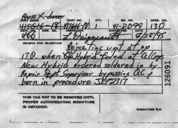 designated QC person for repairs and I accepted. In 1988 the one mistake,